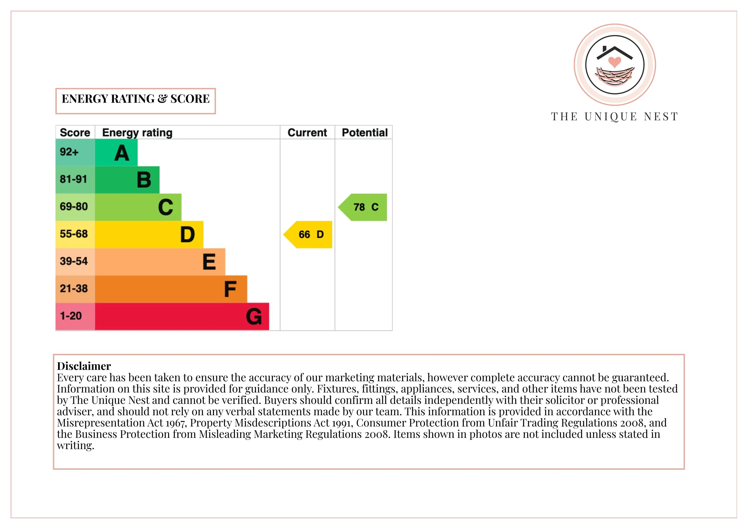 Every care has been taken to ensure the accuracy of our marketing materials, however complete accuracy cannot be guaranteed. Information on this site is provided for guidance only. Fixtures, fittings, appliances, services, and other items have not been tested by The Unique Nest and cannot be verified. Buyers should confirm all details independently with their solicitor or professional adviser, and should not rely on any verbal statements made by our team. This information is provided in accordance with the Misrepresentation Act 1967, Property Misdescriptions Act 1991, Consumer Protection from Unfair Trading Regulations 2008, and the Business Protection from Misleading Marketing Regulations 2008. Items shown in photos are not included unless stated in writing.